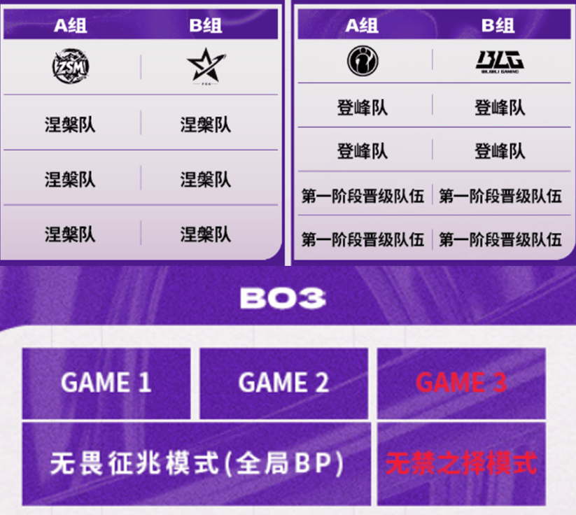 · 采用BO3單循環(huán)賽制,板德杯完小組前3名晉級淘汰賽階段