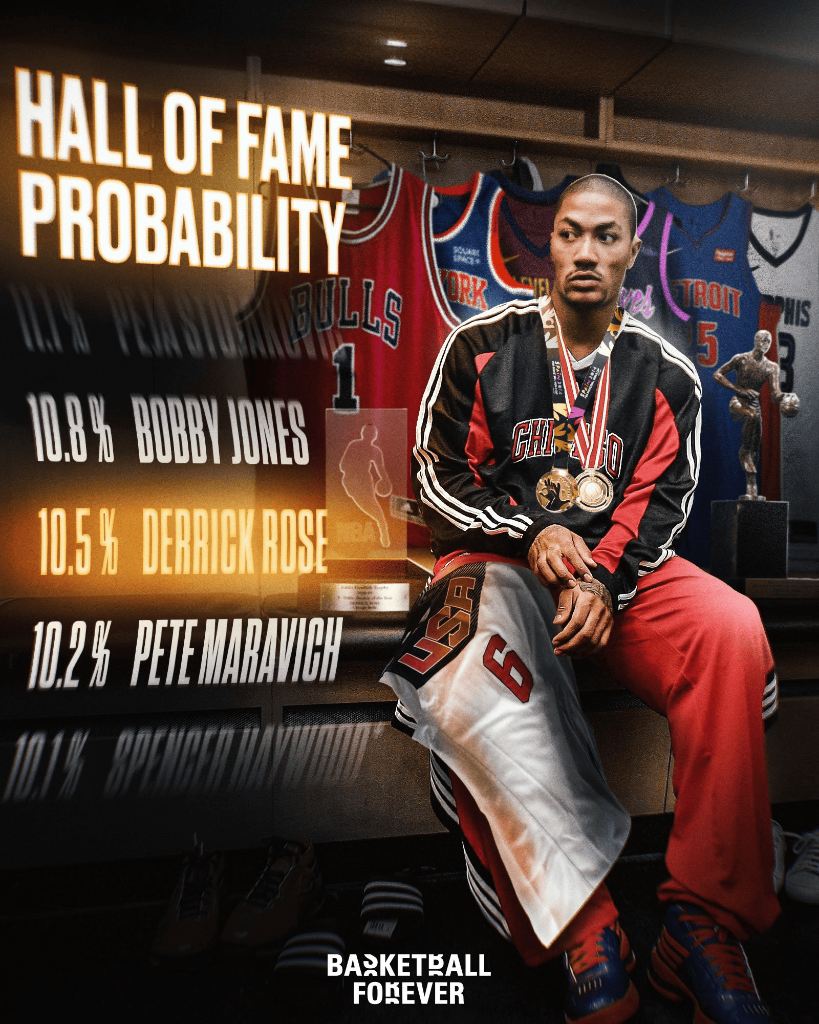 知名籃球網(wǎng)站basketball-reference預(yù)測(cè)羅斯進(jìn)入名人堂概率:10.52%。為歷