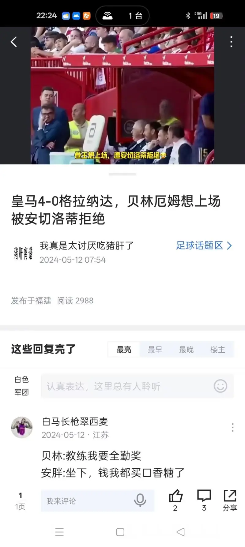 此時貝林身體沒有問題,球問踢格拉納達甚至還想替補上場被安切洛蒂拒絕。辟謠