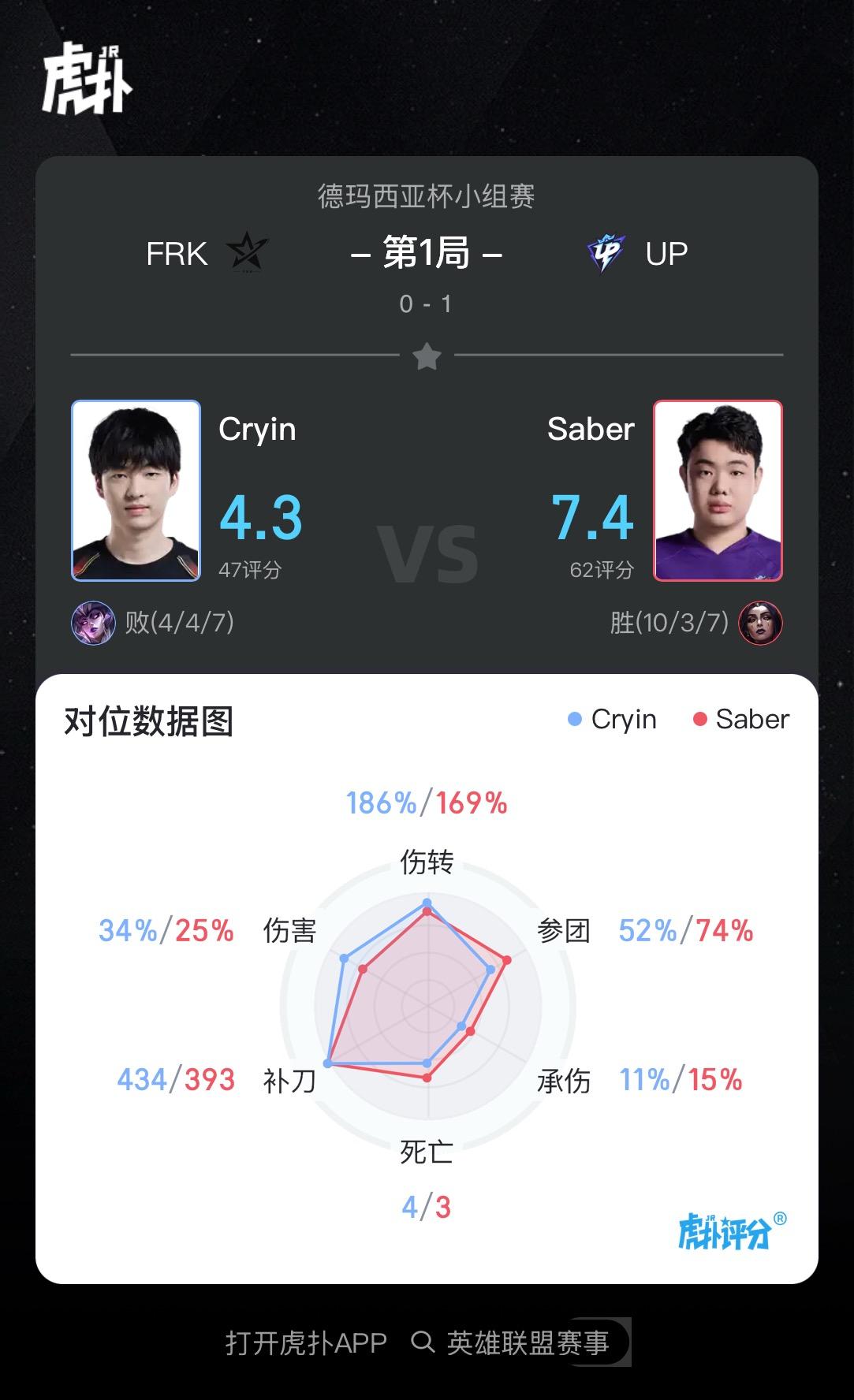 [流言板]Saber使用妖姬打出10/3/7戰(zhàn)績(jī),斬獲UP對(duì)陣FRK第一局MVP
