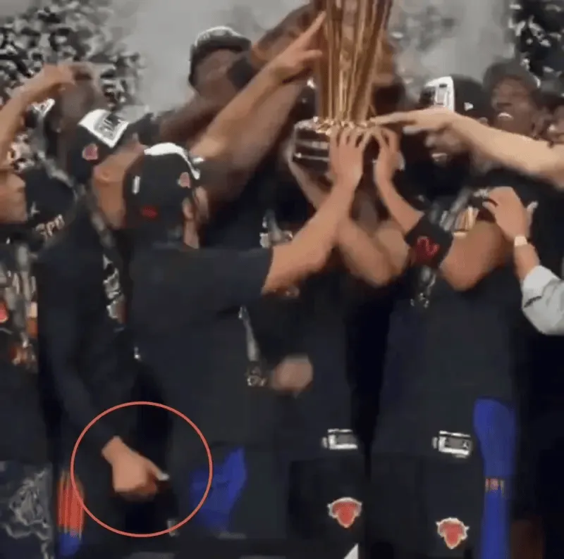 賽后奪冠捧杯儀式上,狡辯哈特在身后戳布倫森屁股,隨后被美媒曬出視頻。