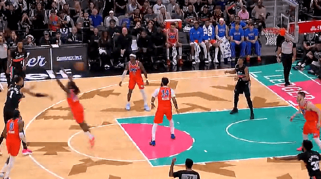 文班亞馬妙傳約翰遜上反籃打進,馬刺領(lǐng)先15分打停雷霆