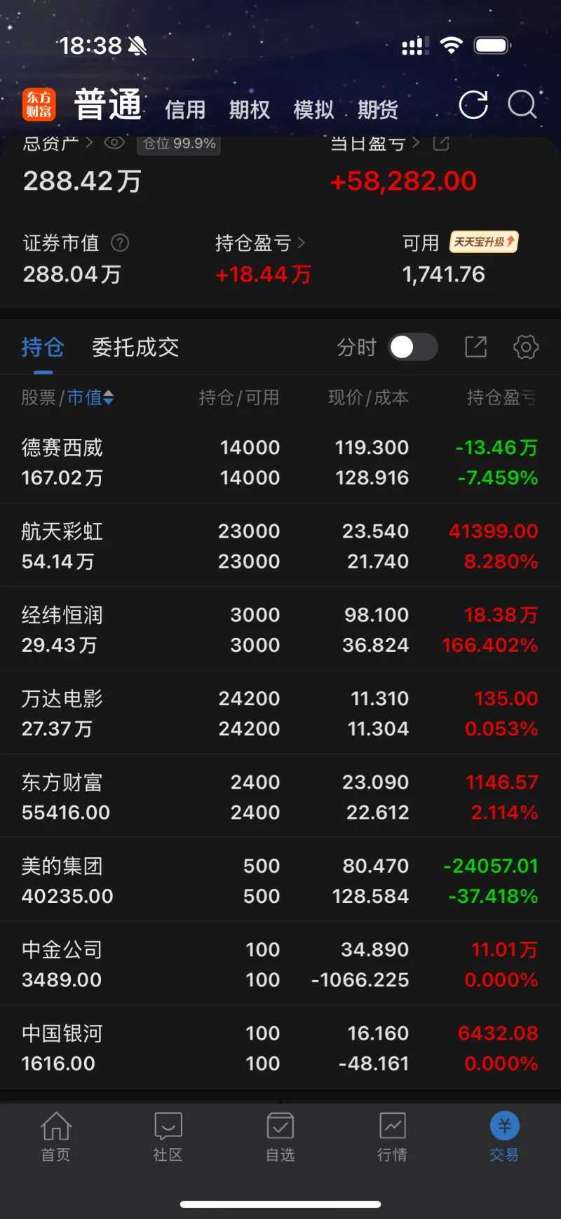 今天水上 5.8w,情況已經(jīng)在慢慢好轉(zhuǎn)了。前一段被按在地板不想動了,怕動多錯多左右打臉?,F(xiàn)在來看我這個習(xí)慣還是可以的,我可以接受回撤并且清倉,但是接受不了自己因?yàn)橹眮y動導(dǎo)致萬劫不復(fù)。目前普通戶288.5w,信用戶 160w,加一起差不多回到 450w,高位回撤65w 差不多,完全可以期待在未來重回前高。
