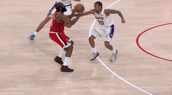 第四節(jié)比賽中,點(diǎn)起打成湖人末節(jié)再次追至個(gè)位數(shù),防守犯規(guī)隨后哈登點(diǎn)起防守造成犯規(guī)打成3+1。板湖