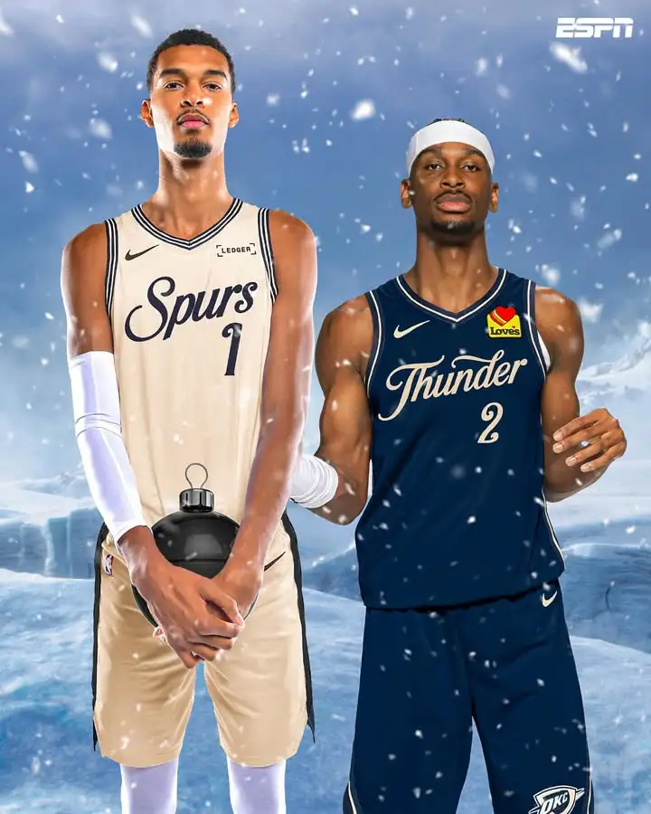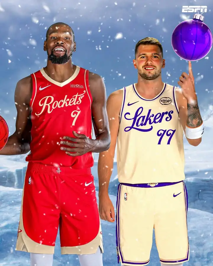虎撲12月24日訊 今日,ESPN發(fā)布ins,衣正曬出今年的板款圣誕大戰(zhàn)球衣。