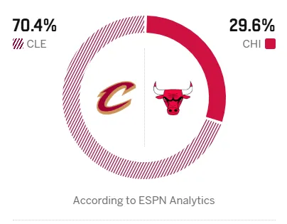 [流言板]ESPN預(yù)測(cè)明日比賽:騎士勝率70.4%,公牛勝率29.6%