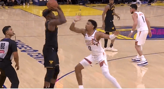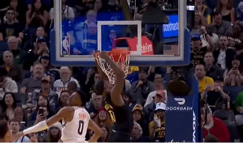 比賽第三節(jié),持領巴特勒起飛暴扣+極限后仰三分命中,先優(yōu)幫助勇士保持領先優(yōu)勢。板巴暴扣