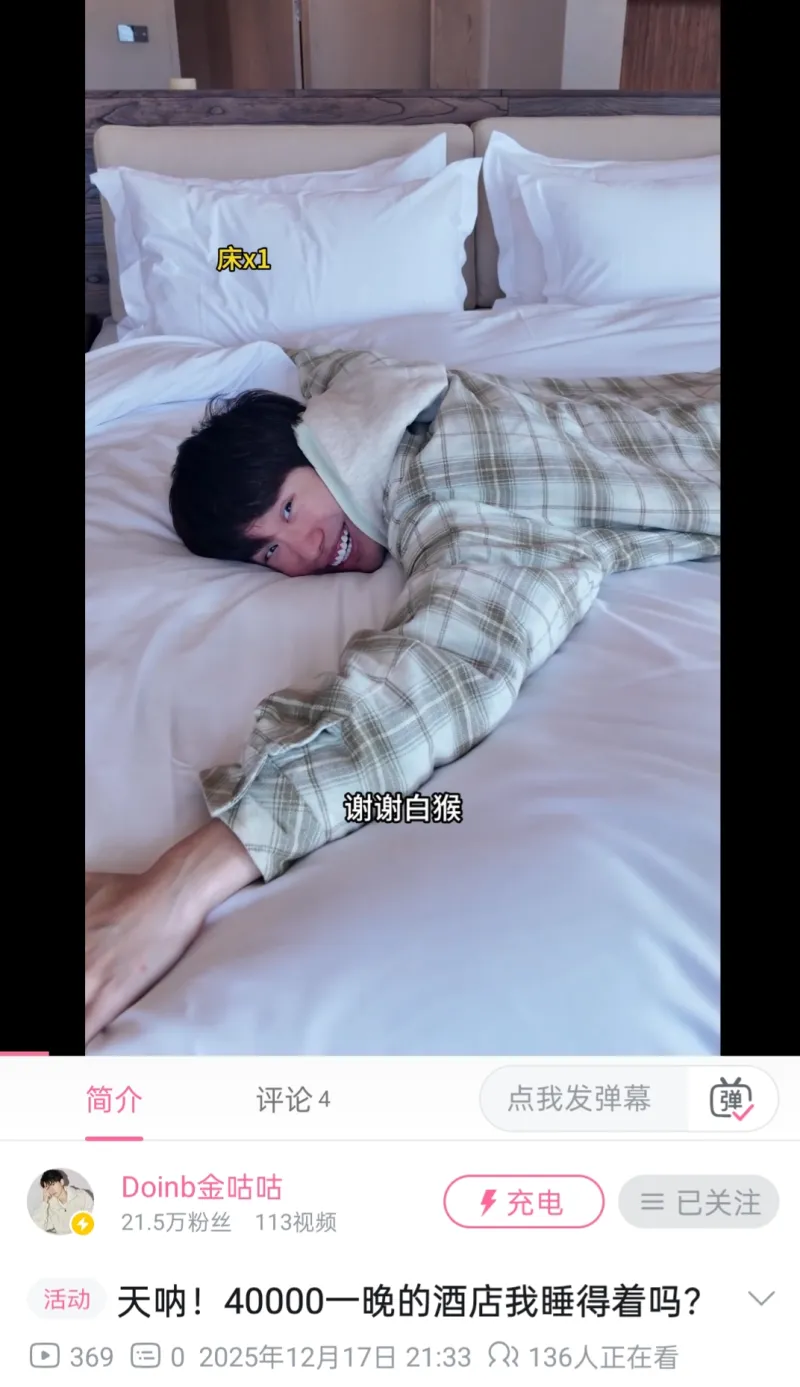 原先訂的有粉云南遇是5000元/晚的房間,結(jié)果這家酒店老板是旅游老板白猴,直接給他升級成40000/晚的白猴套房,約500平方。怒升