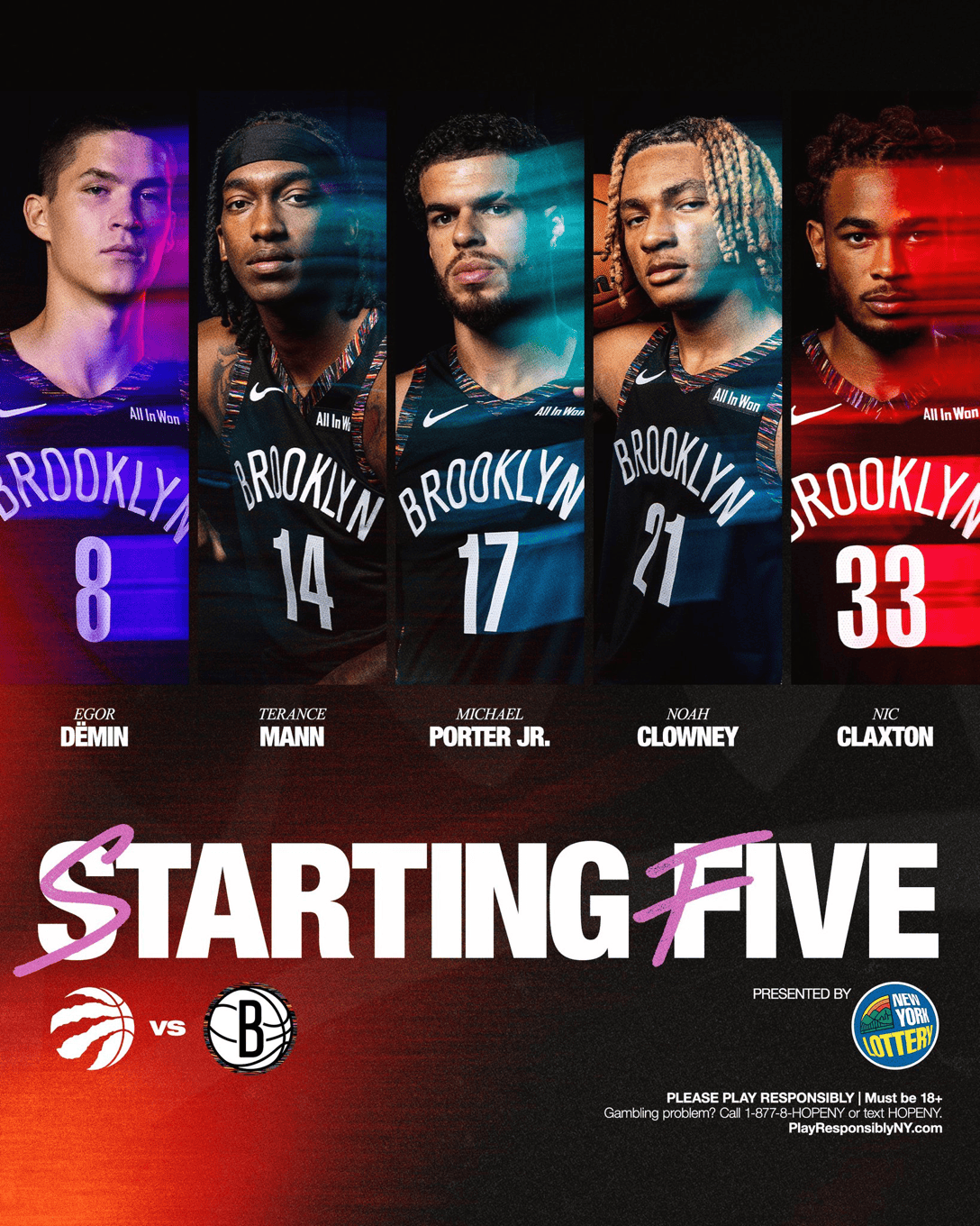 籃網(wǎng)首發(fā):杰明、特克曼、克拉克小波特、流言勞尼克勞尼、板籃克拉克斯頓