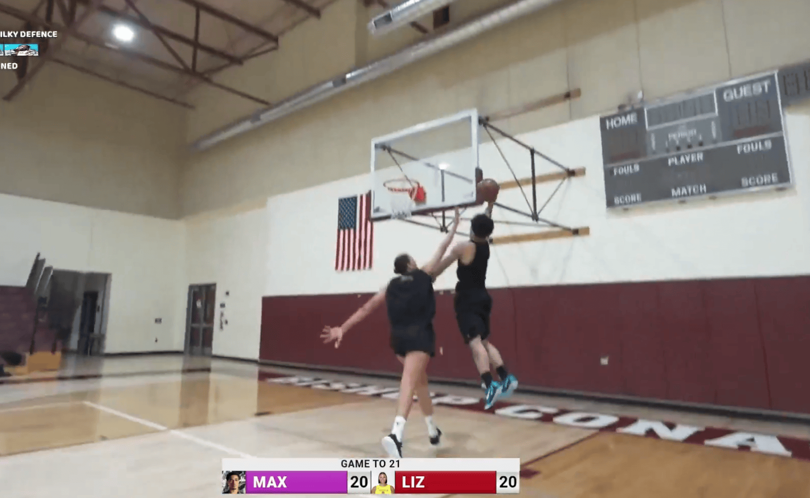 虎撲12月15日訊 美媒Ballislife曬照:1米68的網(wǎng)紅PlaqueBoyMax在一場(chǎng)直播中21-20戰(zhàn)勝2米05的坎貝奇。