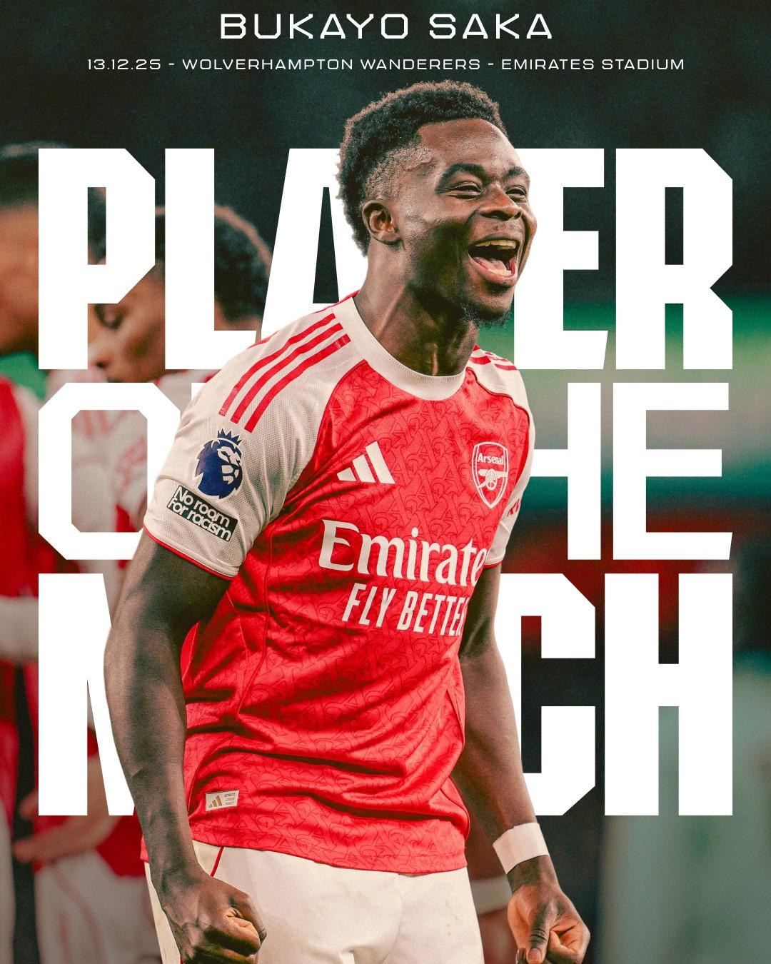 賽后薩卡當(dāng)選阿森納本場隊(duì)內(nèi)最佳球員,隊(duì)兩隊(duì)內(nèi)他也當(dāng)選了英超官方和球迷票選全場最佳??ó?dāng)
