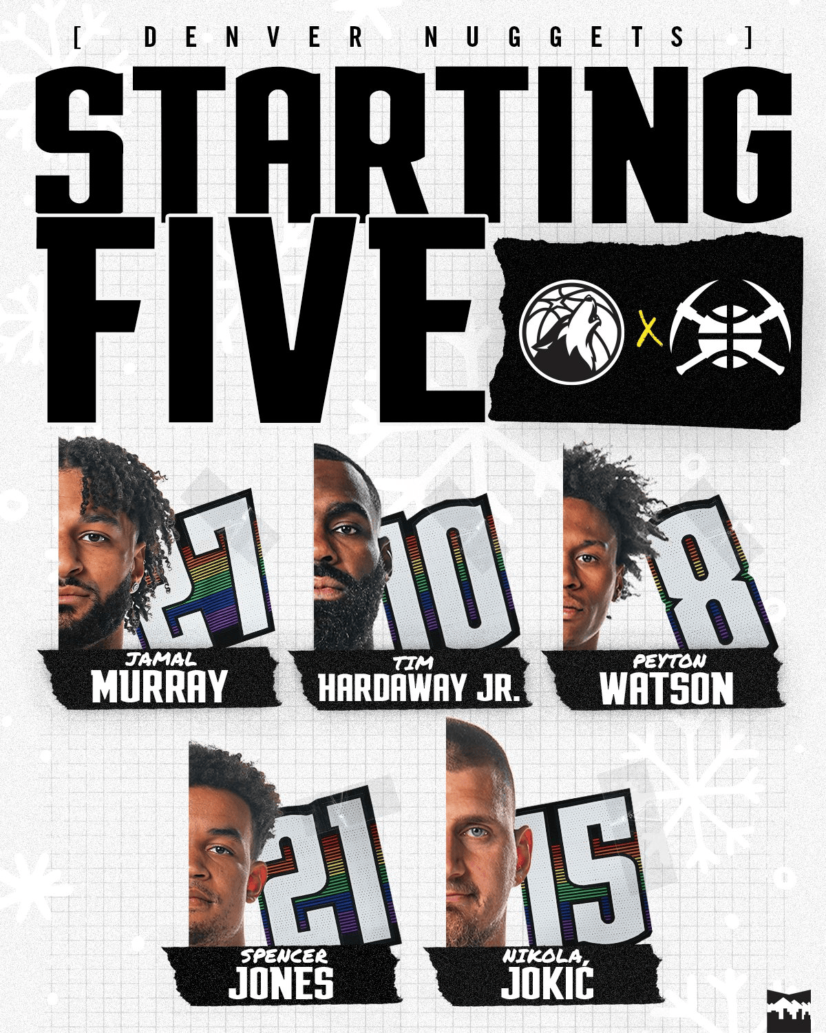 [流言板]掘金圣誕大戰(zhàn)首發(fā):默里、小哈達(dá)威、沃特森、瓊斯、約基奇