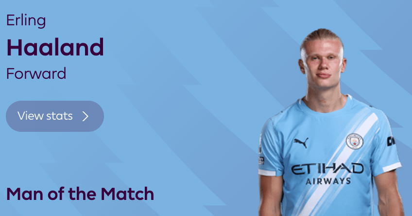 本場比賽哈蘭德2射1傳,得票賽后,役全他以93%的得票率,當選了英超官方票選的全場最佳球員。
