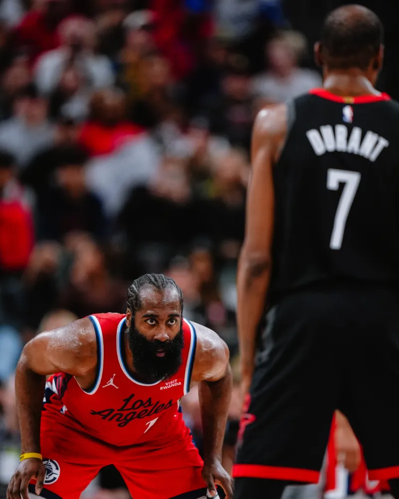 [流言板]專注的大胡子!快船官方分享今日哈登對(duì)位杜蘭特的賽場(chǎng)照