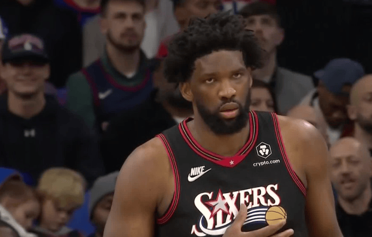 比賽第三節(jié)剛開始不久,76人中鋒喬爾-恩比德膝蓋受傷,他一度返回更衣室,在第三節(jié)還剩6分多鐘時才重返賽場。