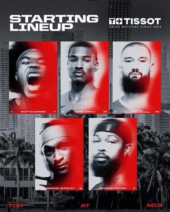 賽前,猛龍更新官方社媒,公布了今日比賽的首發(fā)陣容。