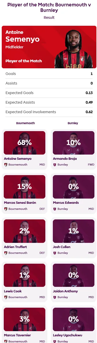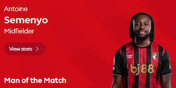 [流言板]首開記錄,塞梅約當(dāng)選伯恩茅斯vs伯恩利球迷票選全場(chǎng)最佳