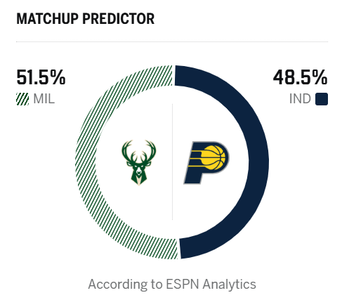 [流言板]ESPN預(yù)測明日比賽:雄鹿勝率51.5%,步行者勝率48.5%