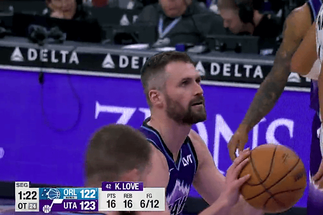 加時賽中,賽打樂福加時賽打進關鍵反超球,超球已經砍下16分16籃板。砍下