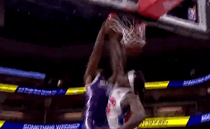 比賽的人雙第三節(jié),威少前場(chǎng)搶斷反擊,板威手遞手妙傳阿丘瓦完成隔人雙手暴扣。少前手暴