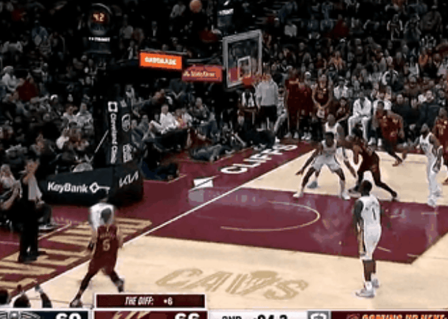 梅里爾底角三分抬手還有,騎士半場領先鵜鶘9分