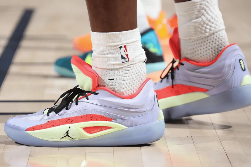 比賽中,威廉森上腳紫紅色Jordan Zion4。