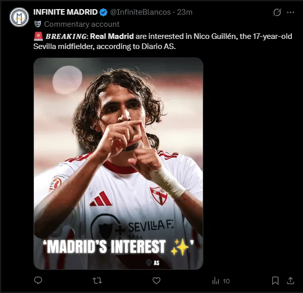 4.塞維利亞17歲中場(chǎng)小將Nico Guillén