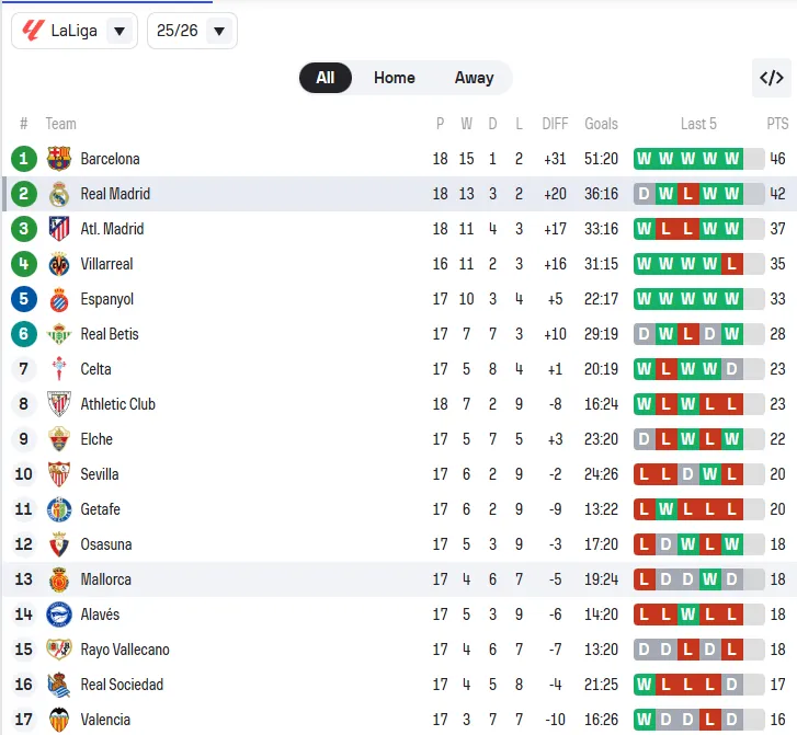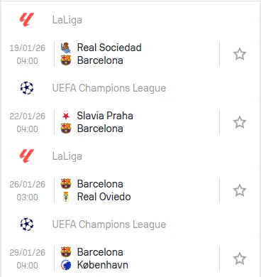 同時(shí),再結(jié)合目前聯(lián)賽領(lǐng)頭羊巴塞羅那1月份的賽程來(lái)看