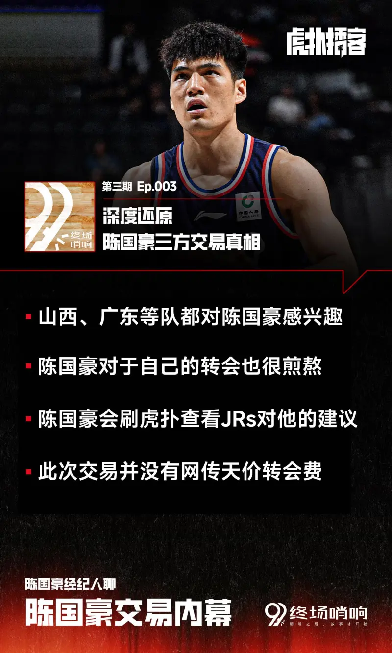 虎撲12月25日訊 今日,虎撲體育類自制播客欄目《終場哨響》的板陳第三期播出,節(jié)目中陳國豪等球員經(jīng)紀人首先聊了聊休賽期關于陳國豪的國豪轉會。