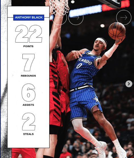 虎撲12月24日訊 魔術(shù)官方更新ins,曬安東尼-布萊克的術(shù)官數(shù)據(jù)海報。