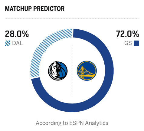 [流言板]ESPN預(yù)測明日圣誕大戰(zhàn):勇士勝率為72%,獨行俠勝率為28%