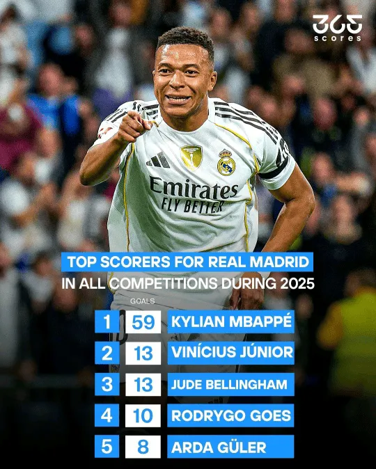 2025年皇馬年度射手榜前五名