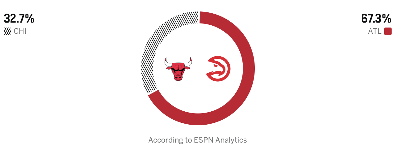 [流言板]ESPN預(yù)測公牛vs老鷹:公牛勝率32.7%,老鷹勝率67.3%