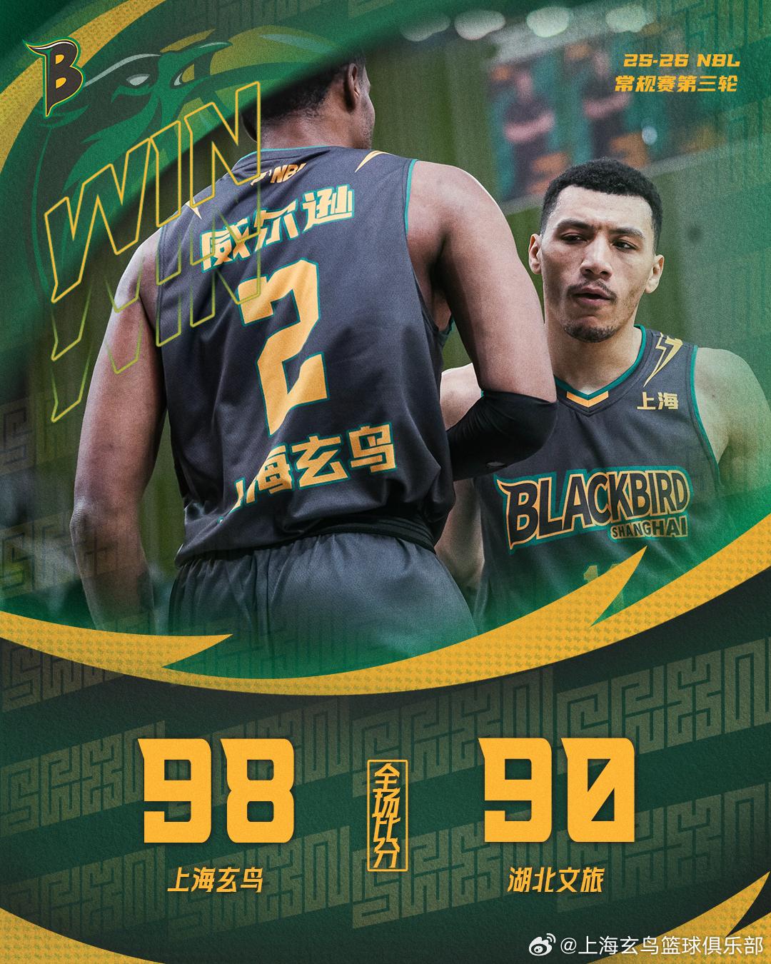 [流言板]上海玄鳥社媒賽后分享海報(bào):球隊(duì)98-90戰(zhàn)勝湖北文旅由虎撲籃球資訊 發(fā)表在CBA專區(qū) https://bbs.hupu.com/cba