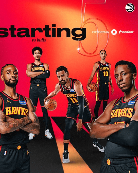 賽前,老鷹社媒發(fā)布本場比賽的首發(fā)球員:奧涅卡-奧孔古、杰倫-約翰遜、特雷-楊、扎卡里-里薩謝、亞歷山大-沃克