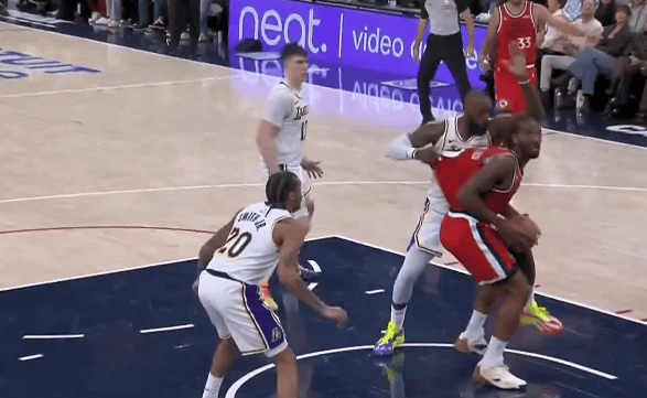 第四節(jié)比賽中,上空身后倫納德籃下上空籃不進,進詹叫出詹姆斯身后切球完成搶斷叫出暫停。切球搶斷