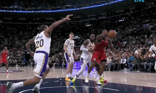 第四節(jié)比賽中,流言籃下籃倫納德籃下上空籃不進,板倫詹姆斯身后切球完成搶斷叫出暫停。納德