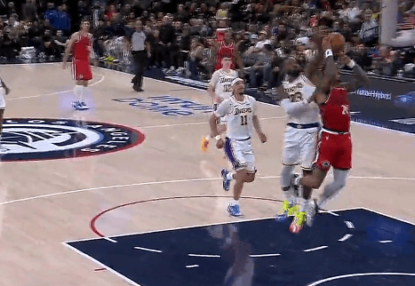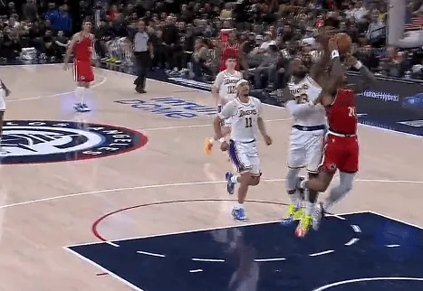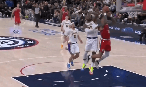 第四節(jié)比賽中,科林詹姆斯身后追防科林斯被打成2+1,打成湖人剩4分鐘落后快船16分。湖人后快