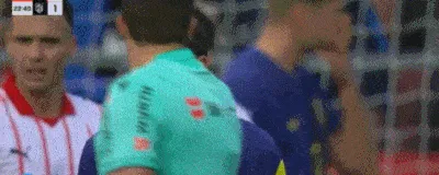 主裁向西蒙尼出示黃牌,后者仍捂住嘴巴喋喋不休