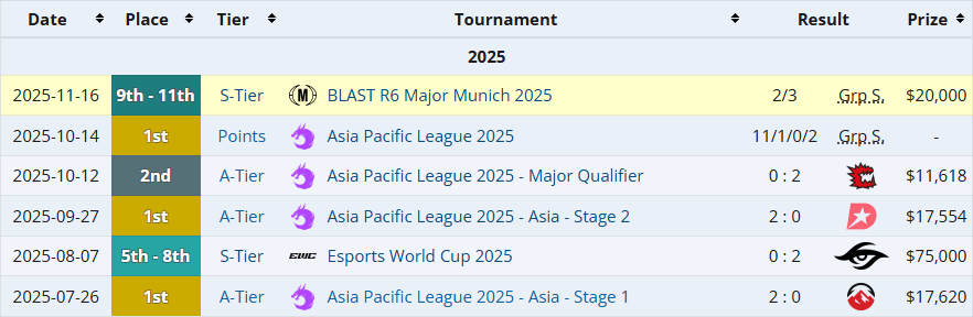 在整個2025年,WBG彩六分部在亞太地區(qū)獲得三冠一亞,在兩次國際賽事亮相上,分別獲得EWC電競世界杯八強和慕尼黑Major第9-11名,可以說是當之無愧的2025亞太地區(qū)最強戰(zhàn)隊!