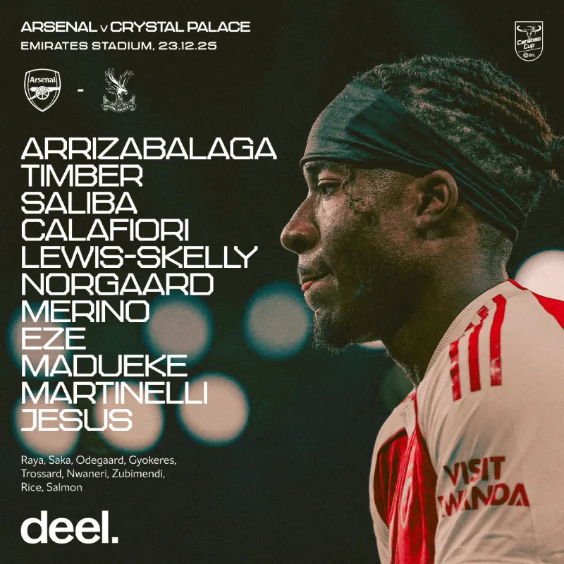 虎撲12月24日訊 英聯(lián)杯1/4決賽,阿森納主場迎戰(zhàn)水晶宮的比賽即將開球,賽前,雙方公布了本場比賽首發(fā)名單。