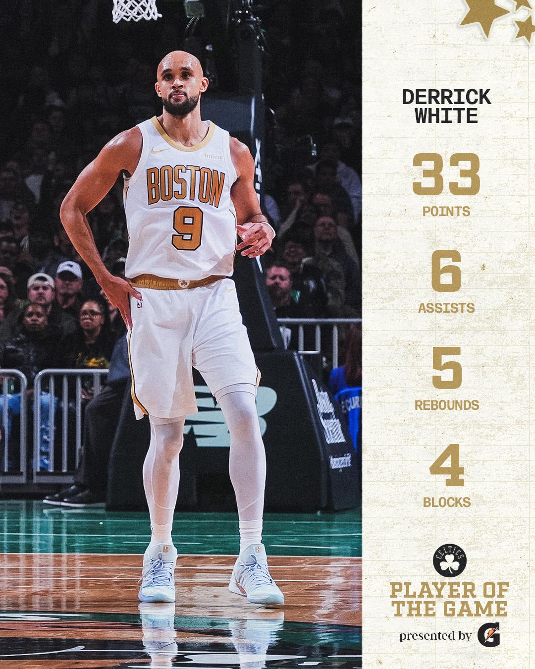 “連續(xù)兩場砍下30+????!德里克-懷特當選本場最佳球員!”凱爾特人官方附文道。