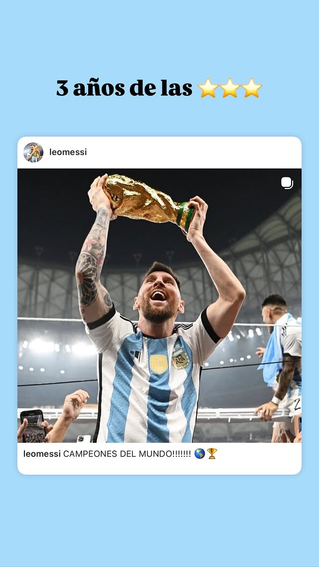 梅西更新社媒,???轉(zhuǎn)發(fā)了自己三年前世界杯奪冠時(shí)的板梅杯奪貼文紀(jì)念道:三年了???