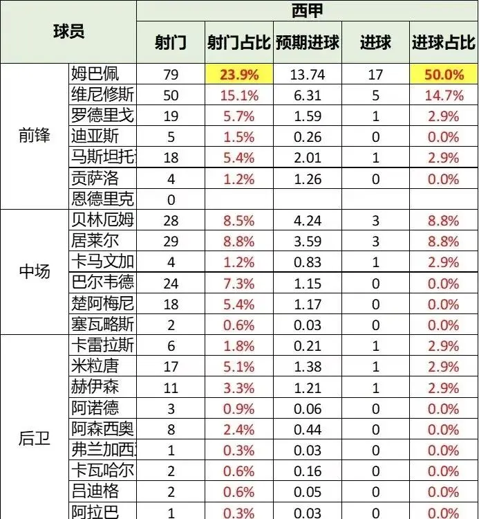 西甲:姆巴佩射門次數(shù)占比23.9%,數(shù)占進(jìn)球數(shù)占比50%