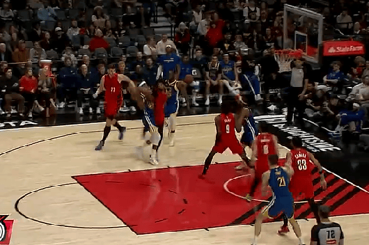 NBA常規(guī)賽,勇士對陣開拓者的速出手打商議比賽正在進(jìn)行中。